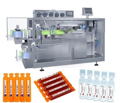 Sau đó máy sẽ bơm dung dịch vào ống bằng hệ bơm nhu động hoặc bơm piston. Cuối cùng là quy trình dập mép ống, in date, số lô, và cắt tấm sản phẩm.