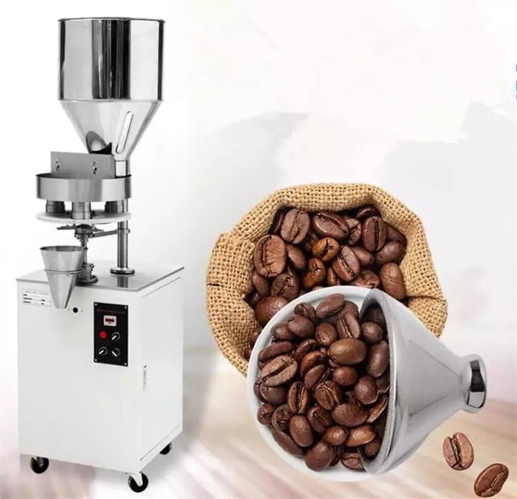 Máy sử dụng hệ thống cốc và thanh gạt để định lượng chính xác lượng nguyên liệu trước khi đóng gói theo quy cách định sẵn. Sau khi định lượng xong, nguyên liệu sẽ rơi xuống bộ phận đóng gói và được đóng lại thành từng túi riêng biệt.