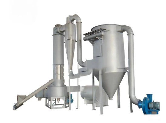 Không khí nóng đi vào buồng khuấy, nghiền và sấy với tốc độ nhất định từ cửa vào không khí ở đáy máy sấy và tạo ra luồng khí xoáy mạnh. Vật liệu chịu tác động của lực ly tâm, lực cắt, va đập và ma sát, kích thước hạt của vật liệu trở nên rất nhỏ và khối lượng và khả năng truyền nhiệt được tăng cường. Ở đáy máy sấy, các hạt ẩm lớn bị nghiền nát, các hạt có độ ẩm nhỏ và thấp nổi lên cùng với luồng không khí quay. Trong quá trình tăng lên, các hạt được sấy khô thêm. Do luồng không khí và chất rắn quay, quán tính của pha rắn cao hơn pha khí, tốc độ tương đối của